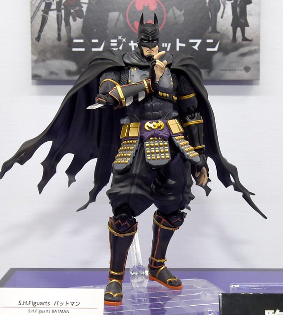 近日由神風動畫與華納影視合作約長達3年多時間製作《忍者蝙蝠俠》(ニンジャバットマン)動畫作品公開其預告片,將美國DC漫畫旗下經典的超級英雄「蝙蝠俠」穿越到戰國時代,這次日本知名玩具品牌BANDAI玩具公司旗下經典的S.H.Figuarts可動商品系列,並於東京 Comic Con2017(コミックコンベンション2017)展示攤位公開將推出其劇場版《忍者蝙蝠俠》相關的可動角色試作樣品!