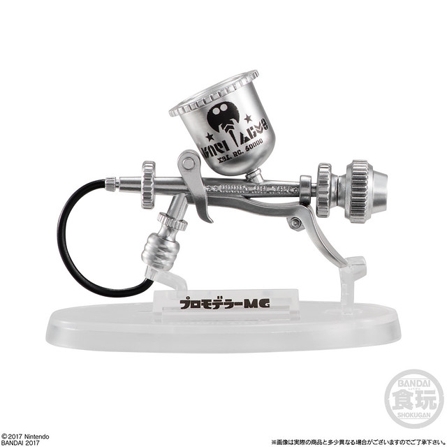 「漆彈大作戰2 武器收藏2」中收錄了已在初代登場與2代新增的眾多武器。每把武器的造型都忠實還原了遊戲中的樣貌,細節相當精密,就連武器上的特殊圖樣(例如「傘彈槍(パラシェルター)」上的華麗圖樣)也都完整印刷上去了!商品同時也附上了展示台座,台座不僅印有武器名稱還刻有「漆彈大作戰」LOGO喔!