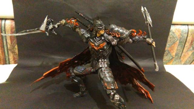 雖然這隻出非常久了,可是我非常喜歡這隻蝙蝠俠,同時我也做了一把雙矛給了這隻武士蝙蝠俠拿,挺適合的,可動度也不賴,我也加上自己的特效來修改一下這隻角色,走了復古風格