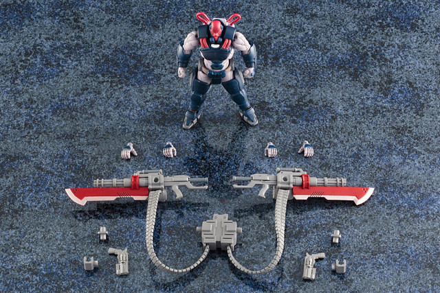 「Governor Para-Pawn Expander」全高約 82 mm,尺寸雖小但全身具備 27 處可動部位,本體使用ABS、POM、PVC...等複數材質構成,呈現優異的可動性,頭部能與其他 Governor 替換增加可玩性。搭配它魁梧身軀的是極具破壞力的重武裝「格林機槍刀」,透過軟材質的彈帶連結至背包,可以靈活擺出各種姿勢。兩把機槍還能夠合併成「雙重格林機槍刀」,輸出雙倍火力!