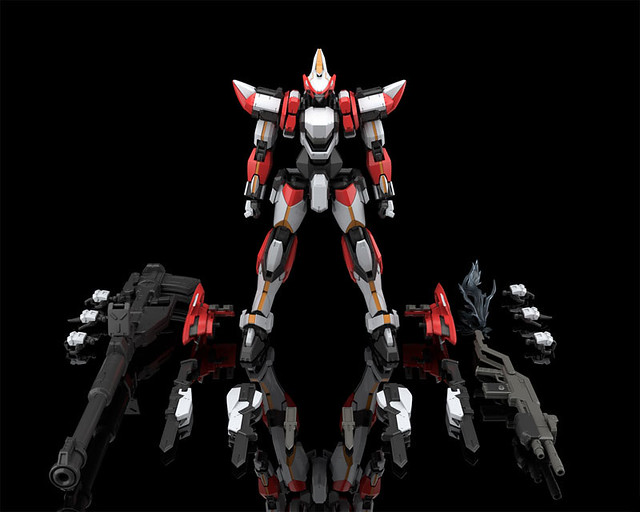 「ARX-8 烈焰魔劍 1/48比例組裝模型」耗時 4 年開發,在機械設計師海老川兼武直接監修之下,終於完成了外型重現原作、可動大幅改良的分色套件。本體可透過可動機構、替換零件方式再現展開支援臂、膝部刀鞘開啟、背部槍枝收納等機能,還包含破碎榴彈砲、單分子切割刀、對戰車小刀、Boxer 2 散彈砲、妖精之羽等大量武裝!