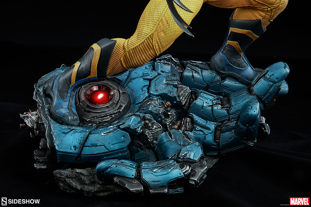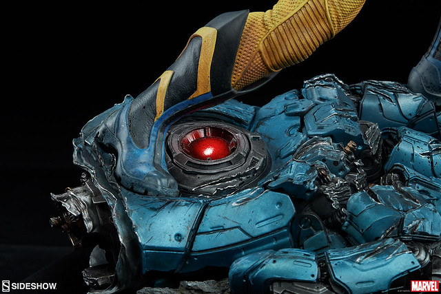 金鋼狼的臉部從牙齒到皮膚都有精緻的描繪,粗壯的肌肉更有著殘暴的線條,雙臂的青筋、大叔味濃厚的手毛都考究地重現,地台則是巨大機器人的手掌殘骸,同樣有著極致的造型和戰損處理,漂亮的上色呈現出金屬的厚重感;Sideshow EX 版中還追加了脫罩怒吼的頭雕!而且面罩直接黏在脖子後方的設計也頗具巧思,更能帶出掀起面罩後的即時感。這款高水準的金鋼狼雕像作品實在值得狼叔粉絲珍藏,推薦給各位玩具人~