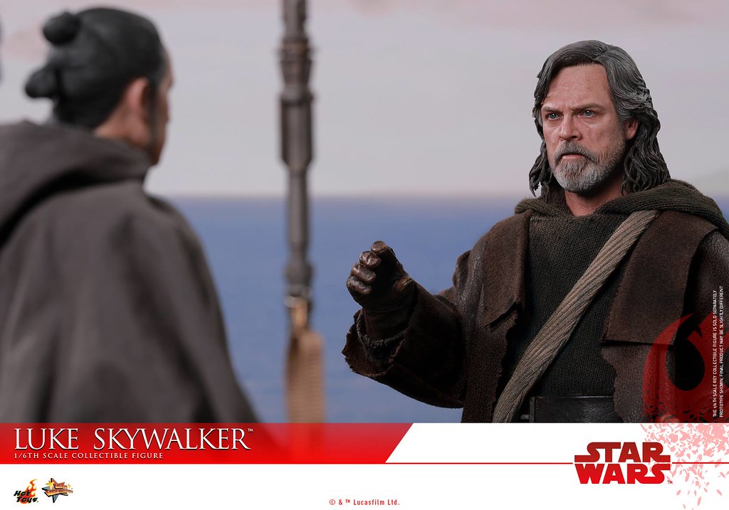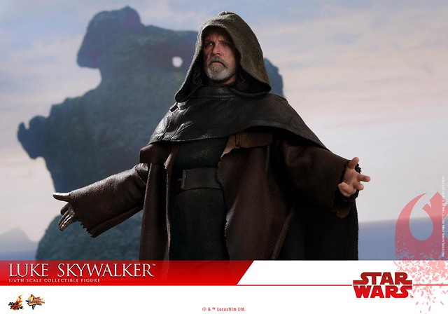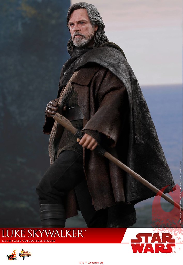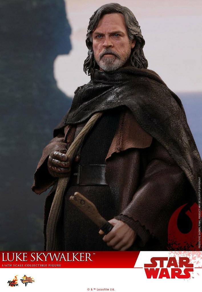 這次的路克即是以他在Ahch-To 星上的造型來設計,整體的服裝色調偏暗,深褐色的大衣、黑色的披風,並施以細膩的舊化、破損細節,讓路克更有自我放逐的感覺,全新開發的頭雕逼真地展現出馬克·漢米爾的神韻,皺紋、鬍子、表情等細節都十分寫實,配件部分包含藍色光劍、蛇頭形狀的拐杖、具開闔設計的指南針、水晶項鍊、髒污的側背布袋。