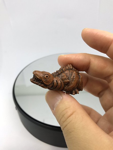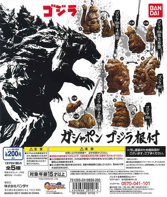 日廠BANDAI萬代玩具公司的GASHAPON轉蛋商品事業部門,這次繼續以《哥吉拉》電影作品為題材來推出一款「哥吉拉根付(ゴジラ根付)」的轉蛋之作,「根付」本來是日本古時候穿在男性的印籠或是隨身錦囊上的裝飾品,也是雕刻精巧優美的民間工藝品,後來多間玩具廠商都推出過「根付」的轉蛋以及盒玩尺寸大小等等的相關作品。