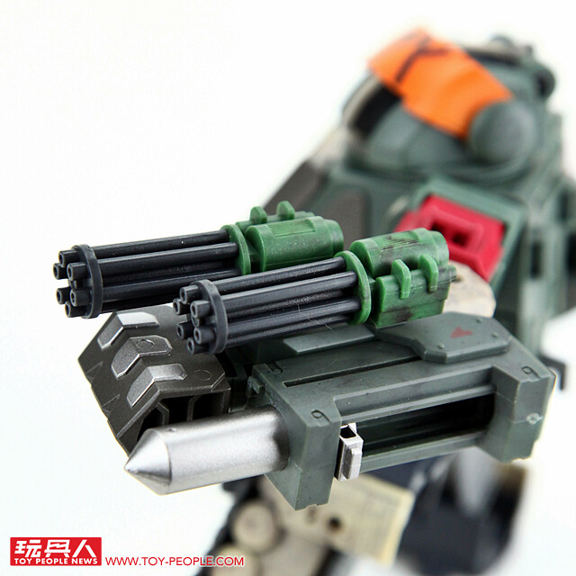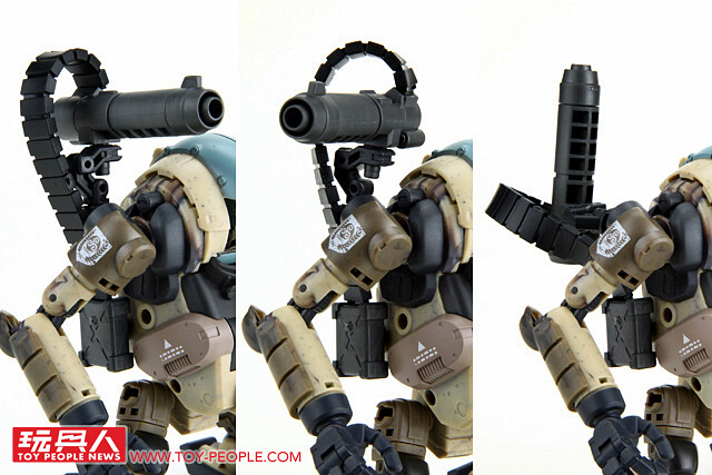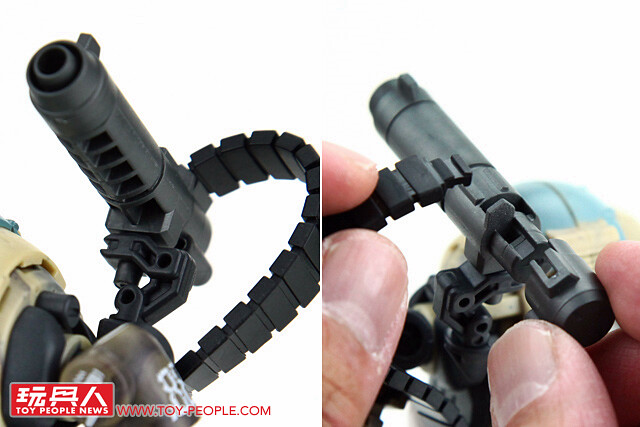 ▼ 肩扛機關炮設計有多重的可動關節,能夠自由改變射擊角度與收納。 彈鍊使用的是軟性材質製作,所以不會因此而限制了可動性。