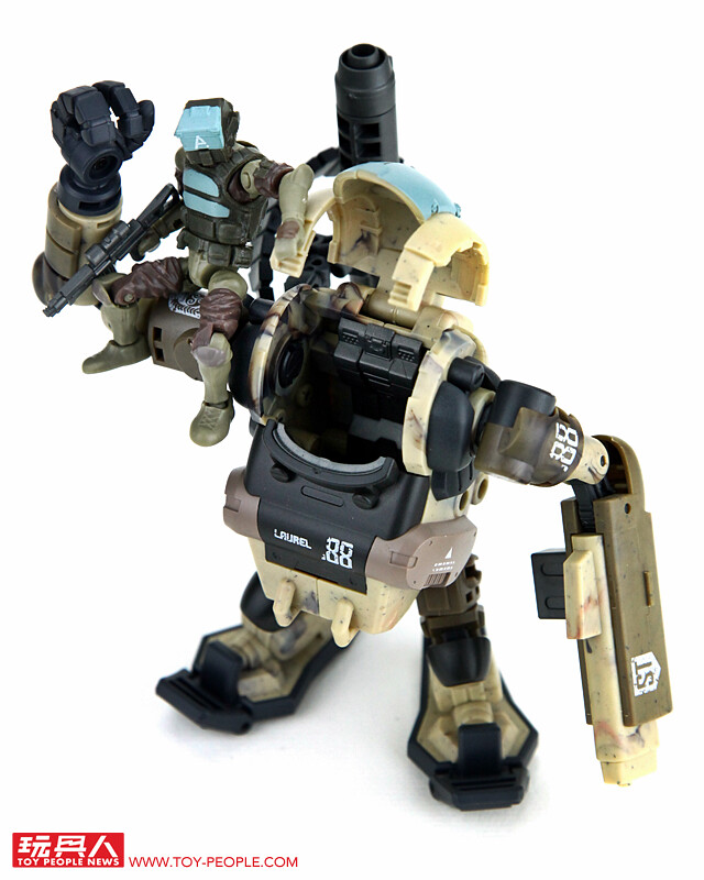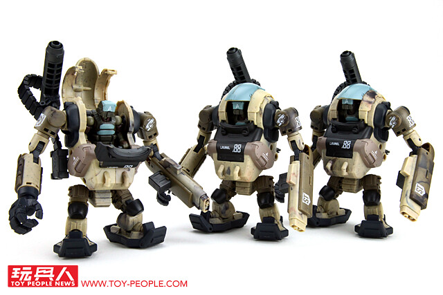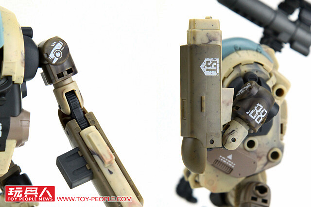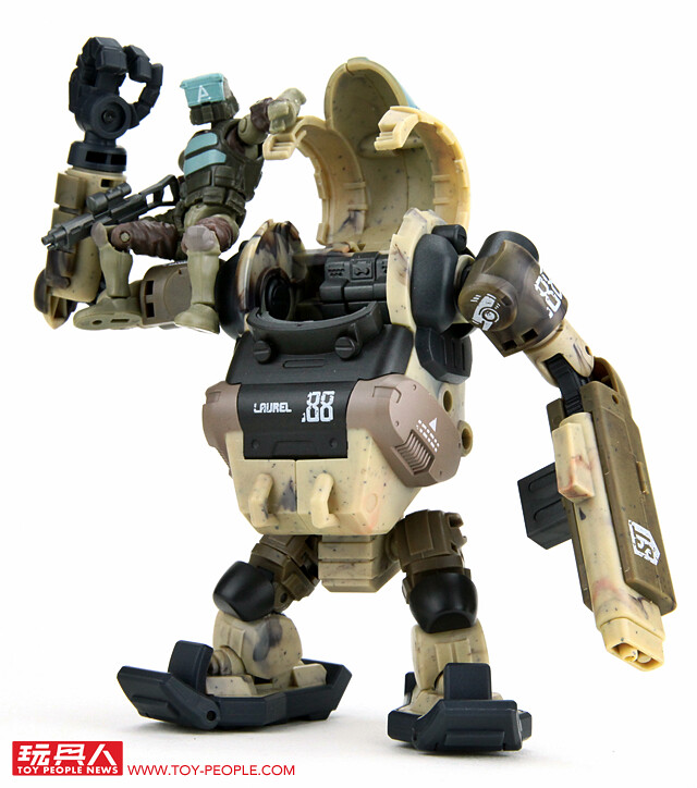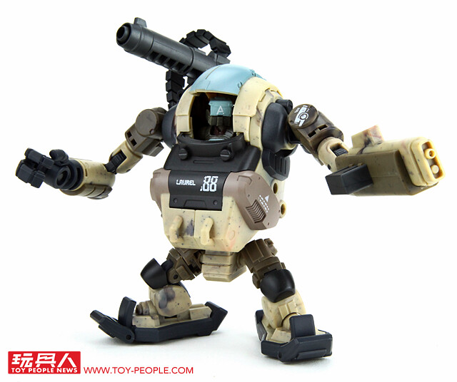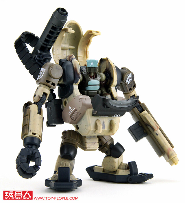 ▼ 88沙地人形機甲LA4S4,完整著裝的型態。 成型色所塑造出的沙漠配色效果相當好,除了省略了停泊用的三腳構造之外,幾乎完整了重現這款熱門機體的造型,2.5 吋親民的售價能夠讓大家毫無壓力徵兵組隊真是太讚了啊~
