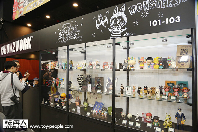 首先,「玩具探險隊」先帶大家去101 - 103 HOW2WORK 的攤位,今年依舊帶來了超多精彩的展品啊!喜愛家昇老師的玩具人有機會可以抽籤購買老師經典的Labubu 作品,而全新超巨大超可愛超療癒的Labubu Compact 更是超級吸睛;此外,會場還有販售Labubu 的黑色、綠色花盆、School Boy、Aloha Boy、以及全新的Worker Boy。此外,還有由插畫師小川老師(Kohei Ogawa)與家昇老師合作的羊毛氈造型Labubu 作品。