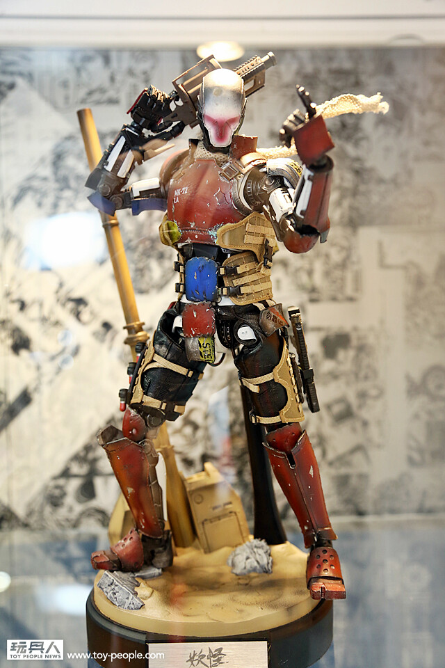 今年D01 - D08 千值練的攤位帶來了許多精彩的原型作品,包括了機動戦艦ナデシコ的「Black Sarena」原型、宇宙最後的3 分鐘Getter Robot Devolution 的「Getter 1」機器人等等的作品;此外,現場還有多款迪士尼的多邊型作品、株式会社Gecco 的商品販售。值得一提的是,這次1000toys 特別邀請了許多藝術家利用東亞重工1/6 比例的素體來創作,大家快來欣賞一下這些精采的作品吧。