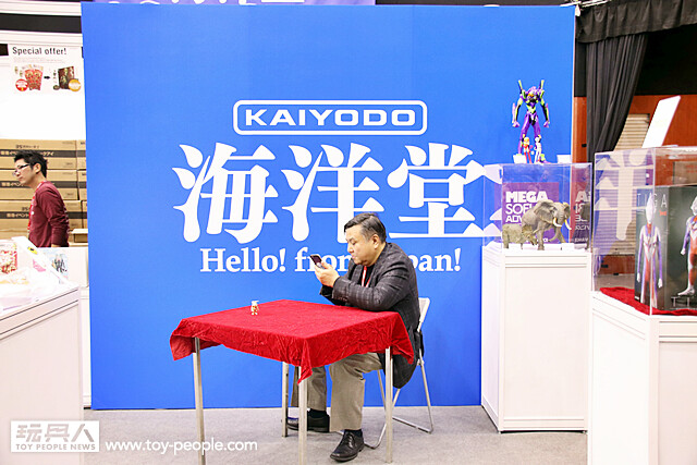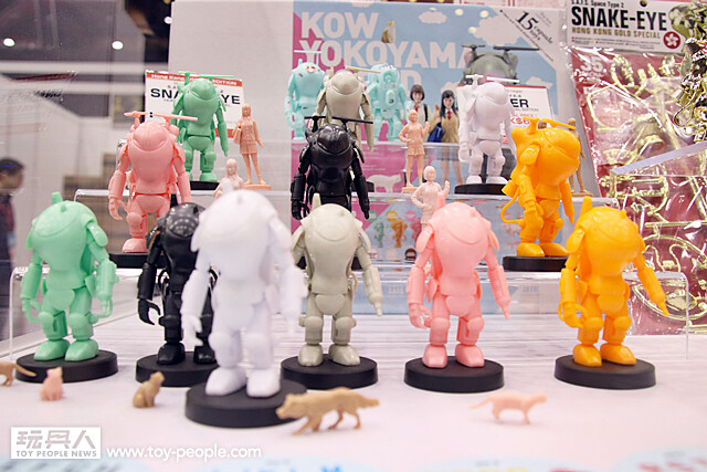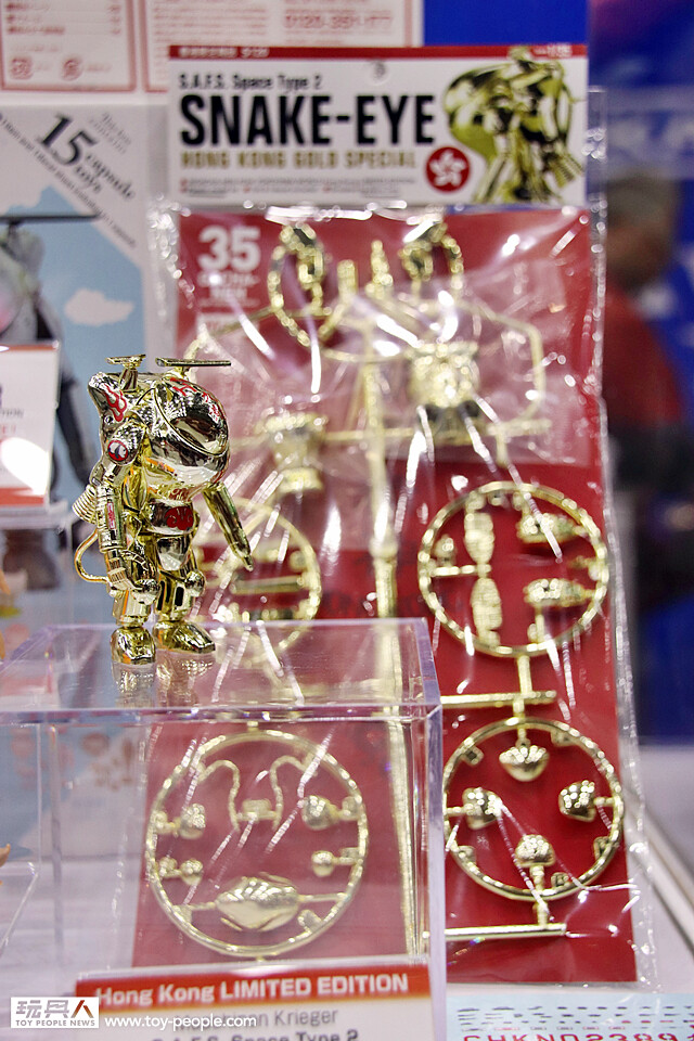 在G09 - G14 攤位、日本元老級的玩具公司「海洋堂」這次除了帶來非常多「新世紀福音戰士」、「TAKEYA式自在置物」的系列商品之外,還有來自科幻軍武大師「橫山宏」,只在Toy Soul 會場限定的金色電鍍版「SNAKE EYE」,而且海洋堂的社長「宮脇修一」也來到現場,小編真的超想找他合照的啊~