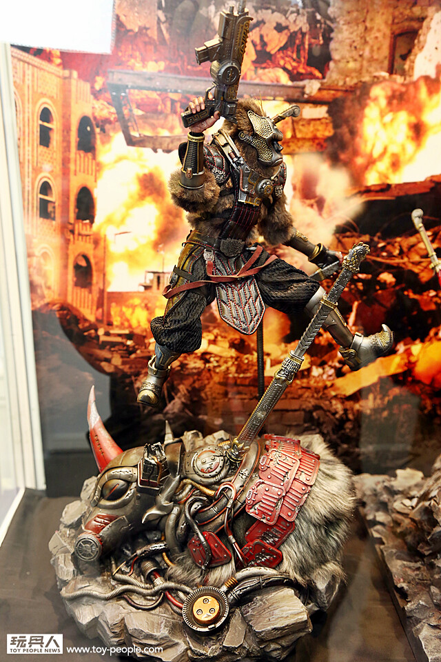 在D13, D15 攤位的香港玩具店SEVEN 這次展出了Blitzway 的《魔鬼剋星》經典四人組和貪吃的史萊姆,threezero《悟空傳》的系列作品,還有Darkcrown toys 的「燃魂」(BURNING SOUL),猙獰的骷髏頭雕和古式機甲風格相當吸引人!