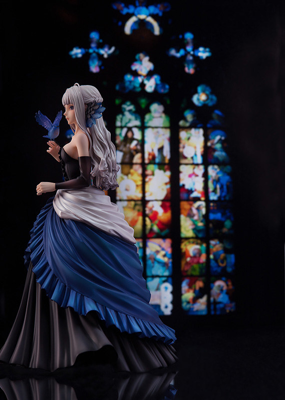 「關德琳 禮服ver.」將卸下女武神戰袍、穿上華麗禮服的關德琳立體化,不僅塑造出精密的髮束、羽毛紋路等細節,瞳孔與肌膚也以多層次且細膩的色彩描繪,呈現如洋娃娃般清澈透明的雙眼以及紅潤的臉蛋,還原遊戲中的繪本風格!禮服的長裙部份不只是有著複雜而華麗的褶痕,就連內部支撐用的裙襯也製作出來啦!配件中還附有象徵女武神的青鳥以及替換右手零件,可重現青鳥停留在關德琳手上的場景!