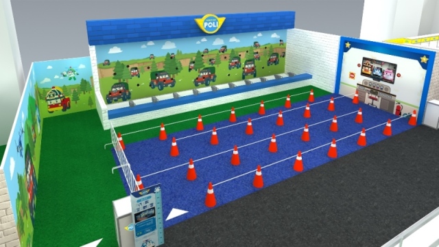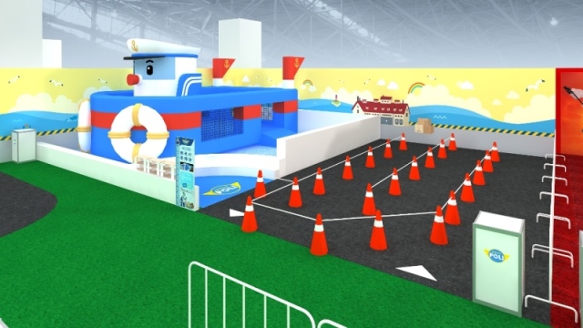 【任務 7:戶外展區-波力賽車手】路上發現超速車輛,趕緊前往現場,維護道路秩序!打造波力專屬電動車,經典重現藍色警車,讓小朋友能實際乘坐,化身成小小警察,跟著波力一起四處巡邏,維護世界安全!
