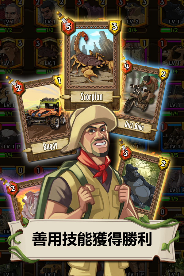 目前玩家可以選用4位角色,搭配46種功能不同的卡牌,在各種不同的天氣、地圖、特殊陷阱之下,進行一場又一場精彩的佔地盤大賽,除了讓對手破產之外,只要搶先佔領一個區域、或是在回合(每次共有12 回)結束後擁有比對方更多的金錢,你就可以贏得比賽。在看電影之前,各位玩具人不仿先來玩玩看這款有趣的《JUMANJI: THE MOBILE GAME》喔~