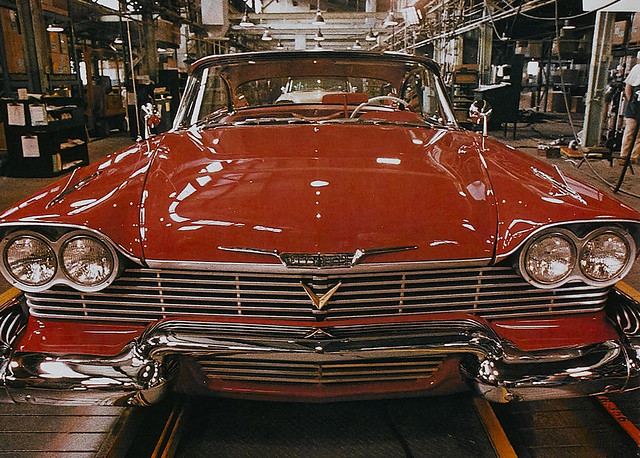 這張圖片裡紅色的車為 Christine(克麗絲汀),是史蒂芬金的同名小說和故事主角買的車子其名字,劇情講述一個被欺負的少年買下一台有被附身的車子,結果個性越變越怪,而且欺負他的人也開始一個一個死於非命。至於在克麗絲汀右上角,就是知名影集「天龍特攻隊」小組成員所搭乘的廂型車~