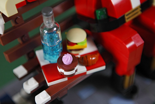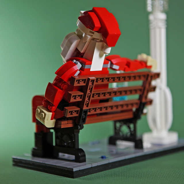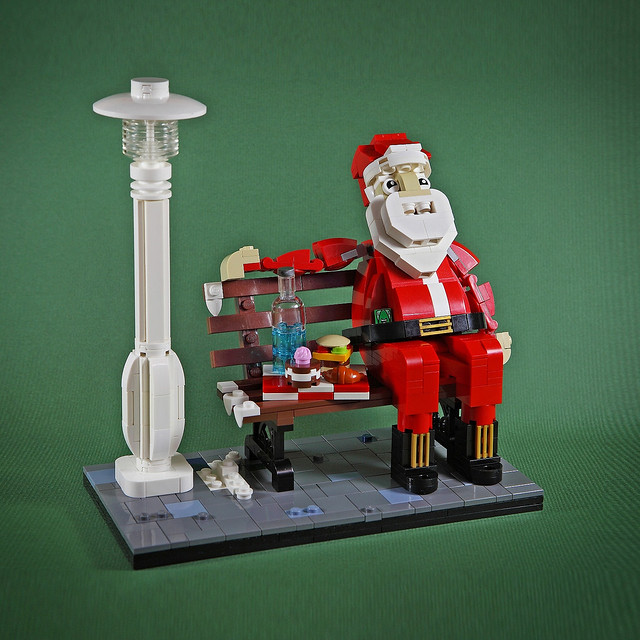 首先是看起來Hen悠閒、坐在長椅上的聖誕老人,「明明是聖誕節你卻在這裡如此慵懶,到底是為什麼呢?」的概念是這次最有趣的出發點!聖誕老人看起來很狡猾的眼神與白色大鬍子,加上胖胖的身體非常有喜感,而且為了增強慵懶的悠閒氛圍,作者將長椅的椅背做出傾斜的角度,讓聖誕老人可以靠著,右手還隨意地放在椅背上,整體人物的神韻相當傳神,一旁還放了美味的食物,看起來真的完全沒有要出發送禮物的意思啊!!