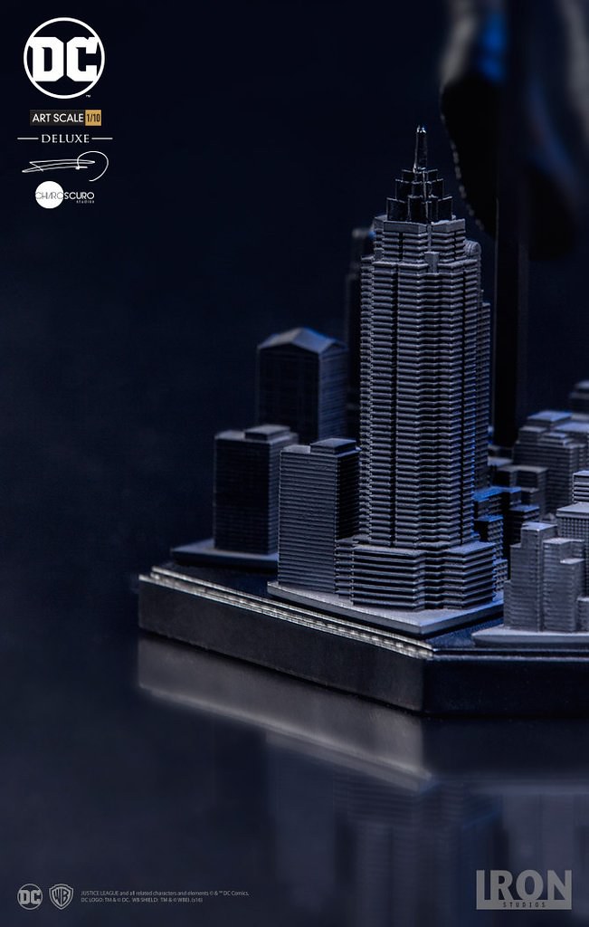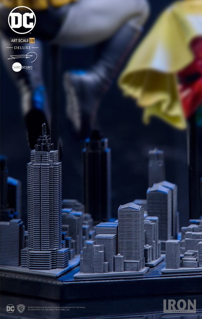 「Art Scale 蝙蝠俠&羅賓 豪華版」是以法蘭克·米勒的經典畫作為主題打造,將飛躍在高譚市之上的蝙蝠俠、羅賓這對雙人搭擋精巧立體化,兩人的肢體表現、飄揚的披風都讓本作有著極具動態張力的視覺效果,服裝造型考究還原,肌肉線條也生動地形塑,羅賓「卡莉」(Carrie Kelley)誇張的髮型更是逼真重現;而高樓大廈林立的場景地台也相當精緻,更增添了收藏價值啊~相信《蝙蝠俠:黑暗騎士歸來》的漫畫迷絕對無法抗拒這款雕像傑作的!