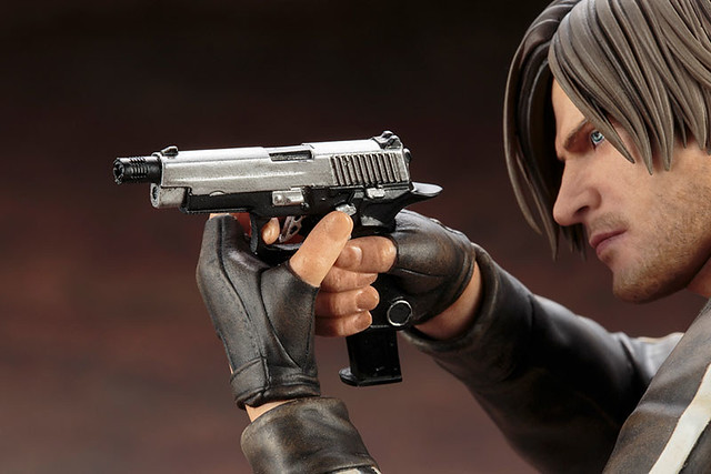 「ARTFX 里昂‧S‧甘迺迪」以CG電影《血仇》登場的最新造型為基礎,頭雕的神韻、毛髮處理得相當精緻,夾克、皮鞋...等服裝也透過不同的光澤、紋理呈現出真實質感。里昂手持對生化恐攻特製的「Sentinel Nine」手槍,擺出近年受人注目的近距離戰鬥射擊姿勢「C.A.R System」,配合底座上的血漬與彈殼,讓緊張感全都沸騰上來啦!