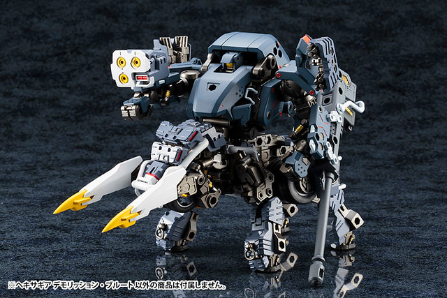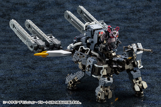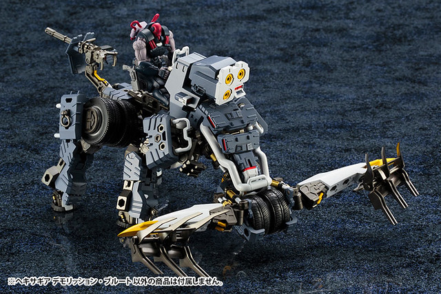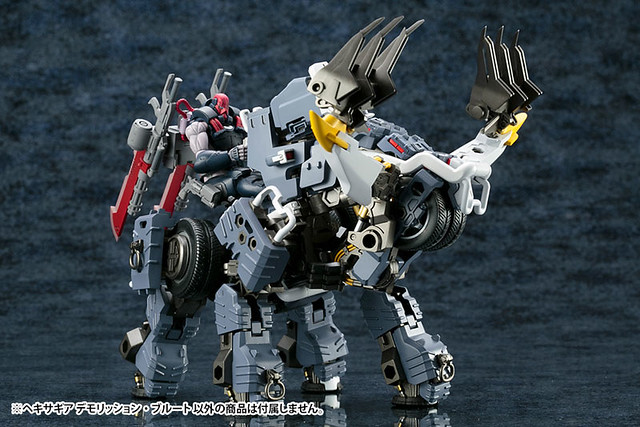 「HEXA GEAR Demolition Brute」可變形為工兵車型態「CEVs 模式」與獸化型態「Zoatechs 模式」,豐富的武裝包含了「攻城錘(Battering ram)」、「巨力犁(Power plow)」、「多重鎖定飛彈(Multi lock missile)」、「煙霧發射器(Smoke discharger)」、「迷你砲機槍(Mini gun)」,透過裝甲上的多數接點,還能與使用同系列的套件進行擴張,不需要另外改造!