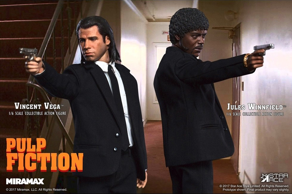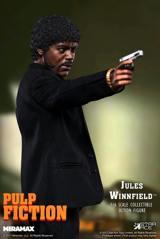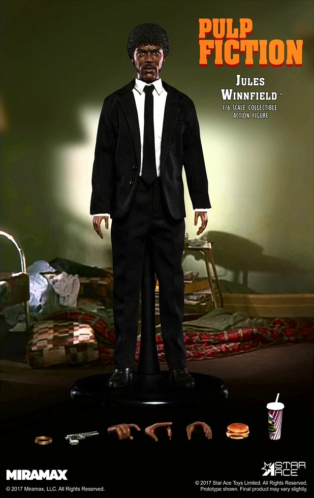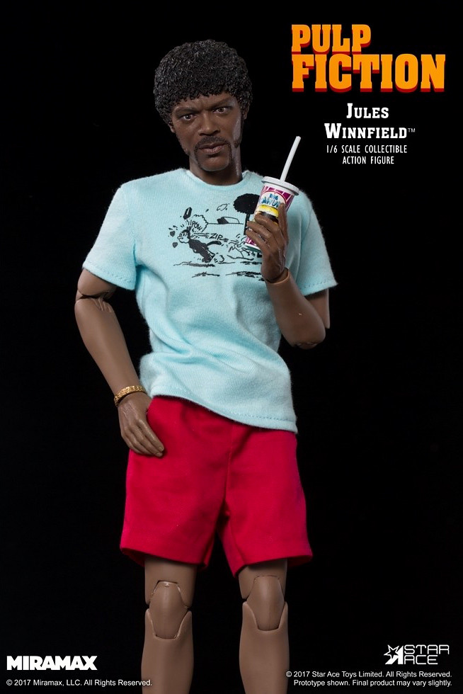 Star Ace Toys 本次所推出的作品,將發行三位主角之一的殺手朱爾·溫菲德,並同步推出他的搭檔文生·韋格。 出自於第一段故事:“文生·韋格&馬沙·華勒斯的女人(Vincent Vega and Marsellus Wallace's Wife)” ,第三段故事的主角朱爾·溫菲德由好萊塢知名男星山繆·傑克森飾演;他與搭檔文生一同去討回老闆的神秘手提箱,他令人搞不清楚意圖卻又倍受威壓的氣勢十分精彩,讓他獲得了奧斯卡最佳男配角獎提名。