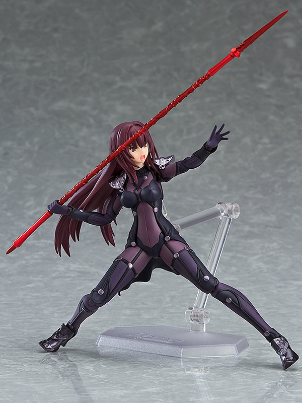 期待已久的「figma Lancer/斯卡哈」以精緻造型再現那套性感、神秘的黑色緊身衣,並透過 figma 獨創關節零件打造高度可動,可配合放鬆的「無表情臉」、攻擊時的「吼叫臉」以及帶著自信笑容的「好勝臉」把玩出各種場景,配件中更附有兩把魔槍,能夠重現遊戲中施展寶具「貫穿死翔之槍(Gae Bolg alternative)」,手持雙槍的造型!