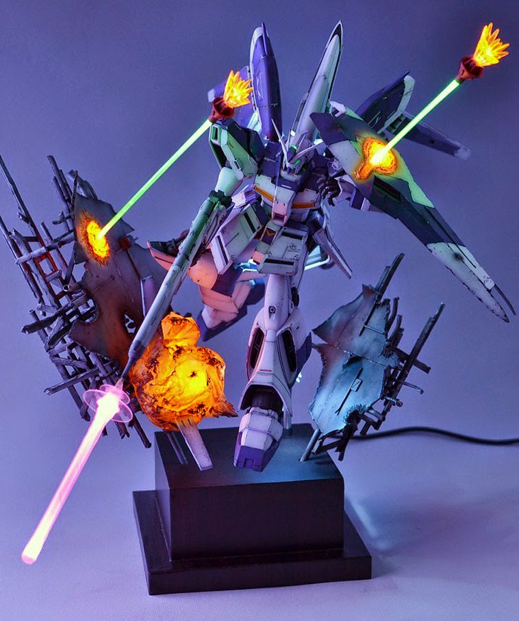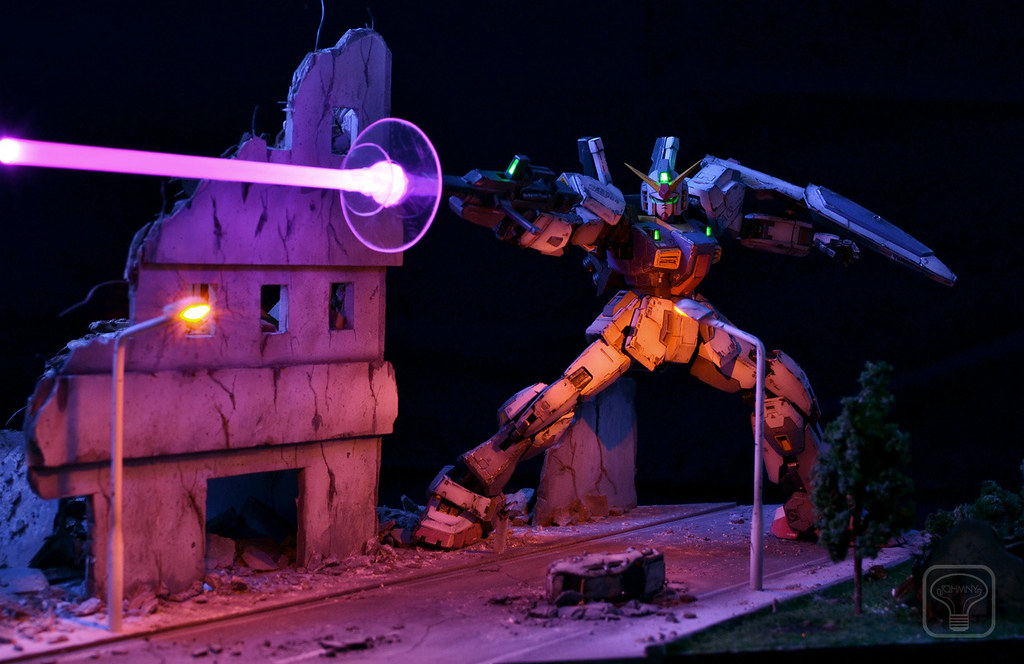 ▼ 《黎明的反擊》RG鋼彈MK2,利用透明膠棒、圓板和LED的組合,捕抓光束槍發射的一瞬間。