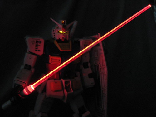 ▼ RX-78-2鋼彈改裝套件#1中的微型光束劍,電池和LED都收納在劍柄之中。