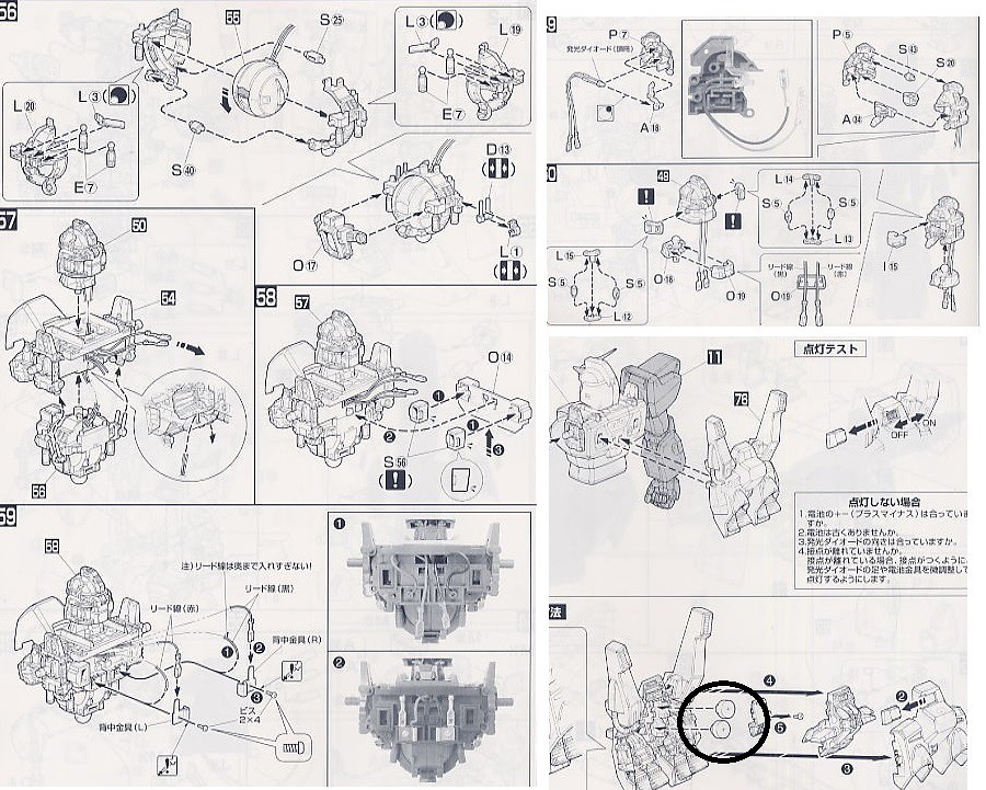▼ 相較於鋼彈頭,薩克單眼雖然比較簡單,佈線卻更加複雜,電池位在胸部,增加了可動干涉和組裝上的難度。
