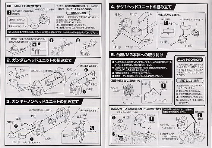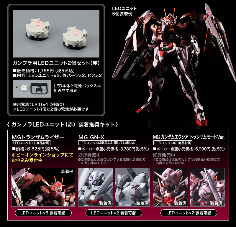 2009年,鋼普拉LED技術再次進化,發展出電池、LED、配線一體化成形的Gunpla LED Unit單元模組。和HY2M系列需要選購特定機體的套件不同的是,只要購買一組LED單元組,任何機體只要有對應的插槽,都可以像USB一樣,隨插即用真方便。而且,就像買車一樣,標準配備沒有LED,另外選配可以升級車頭燈,真是相當實惠的組合。