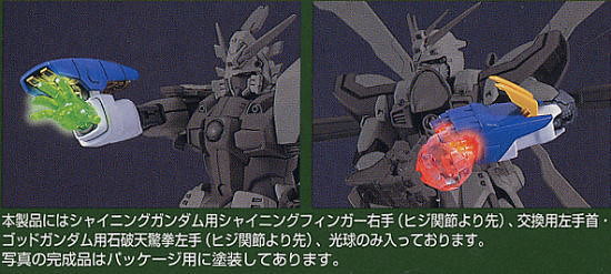 ▼ HY2M-MG系列W02,為MG神鋼彈和閃光鋼彈特別開發的爆熱神威掌和石破天驚拳發光套件。