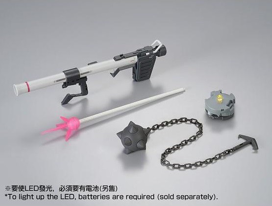 ▼ PB限定MG RX-78-2鋼彈3.0改裝套件。除了頭部LED組之外,還附了火箭筒、流星鎚和雷射標槍。