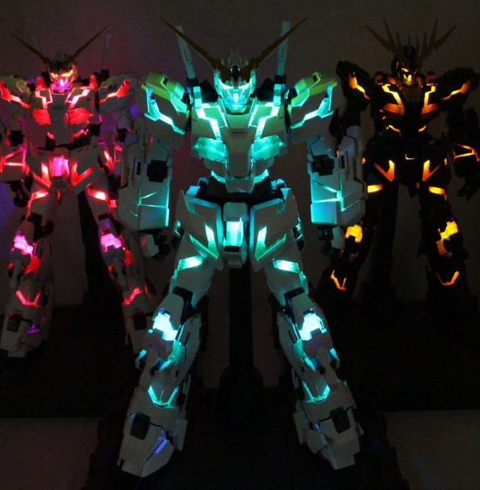 ▼ PG獨角獸鋼彈最終決戰仕樣(中),像這樣三架會發光的可能性之獸擺出來,是不是每天都有過聖誕節的感覺呢?轉吧七彩霓虹燈~~~