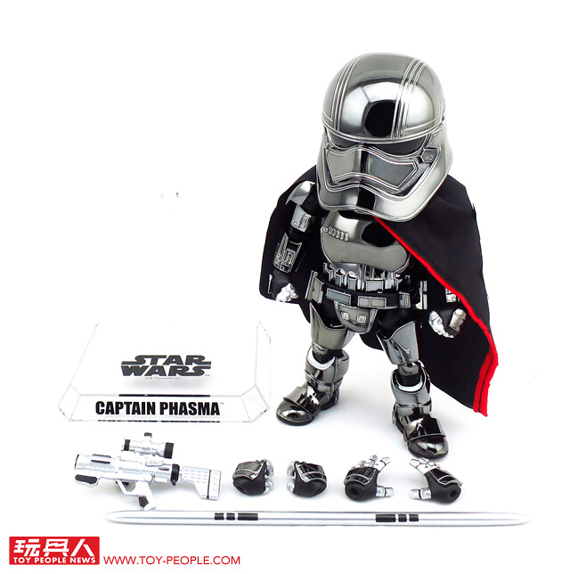 繼承了EAA系列的靈魂與精髓,這次的八部曲版法斯瑪隊長同樣擁有著一貫的SD造型及高規格的可動性,全身上下三十處關節搭配六吋的尺寸讓她依舊有著高自由度的可玩性,除此之外,堪稱是法斯瑪隊長最大招牌特色的鍍鉻盔甲,也因應劇中的新造型修改為更亮眼的電鍍塗裝,不對稱設計的披風也採用了真實的布料加以呈現,標準配備的F-11D爆能槍當然也沒有少,而在與芬對決時所用的長標槍也一併附屬在內,喜愛法斯瑪隊長的星戰粉絲們,千萬別錯過這個精彩絕倫的華麗之作啊!