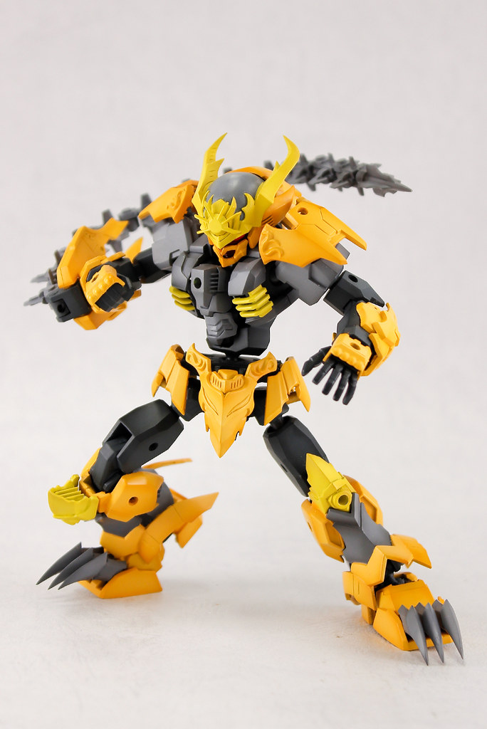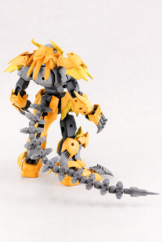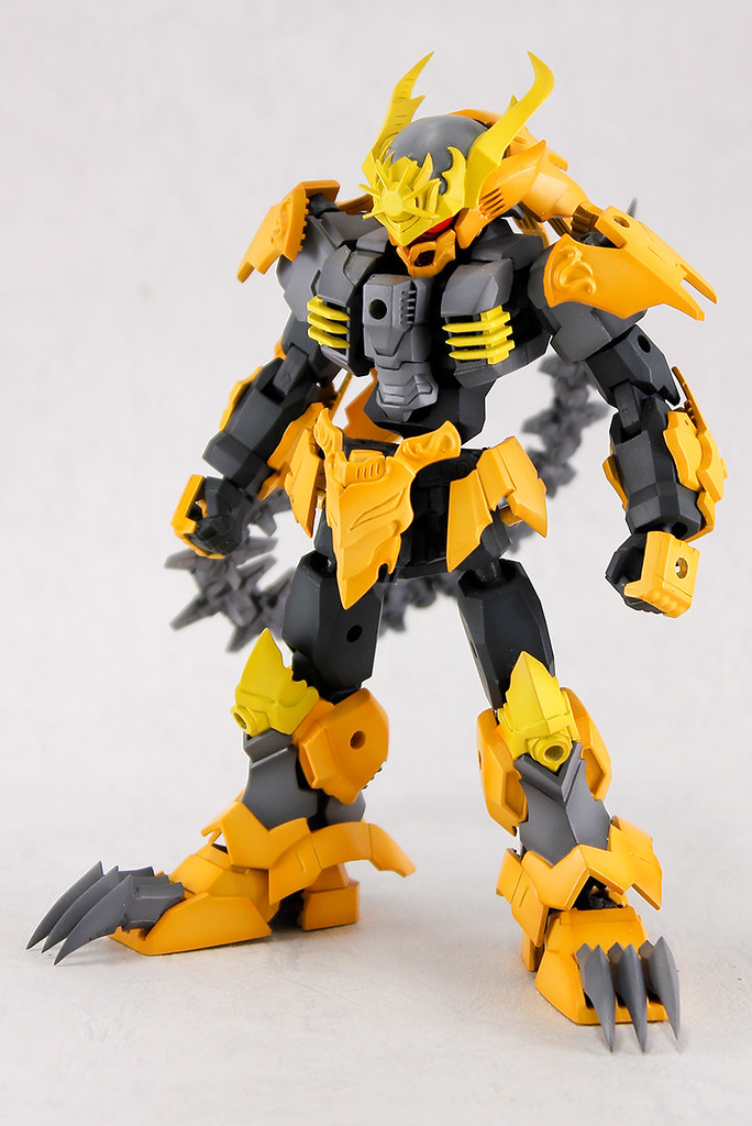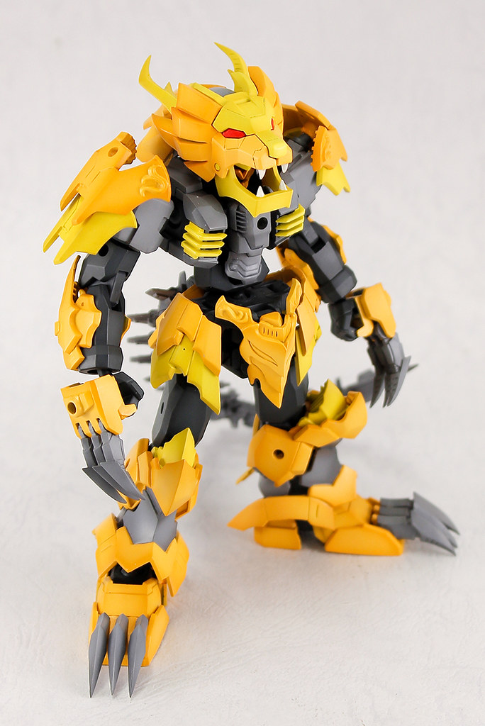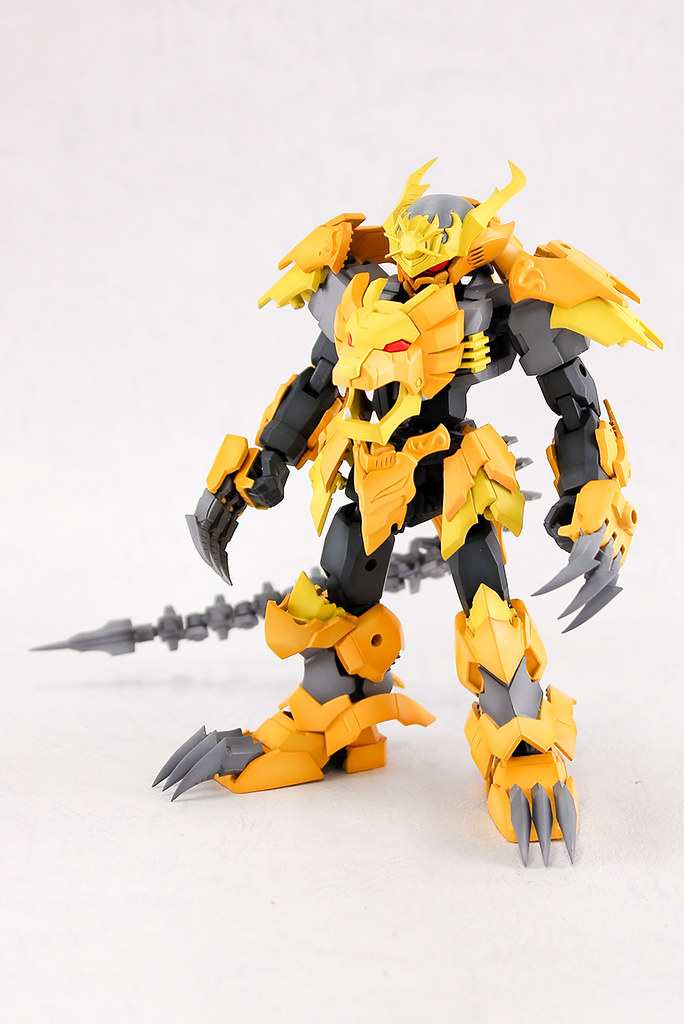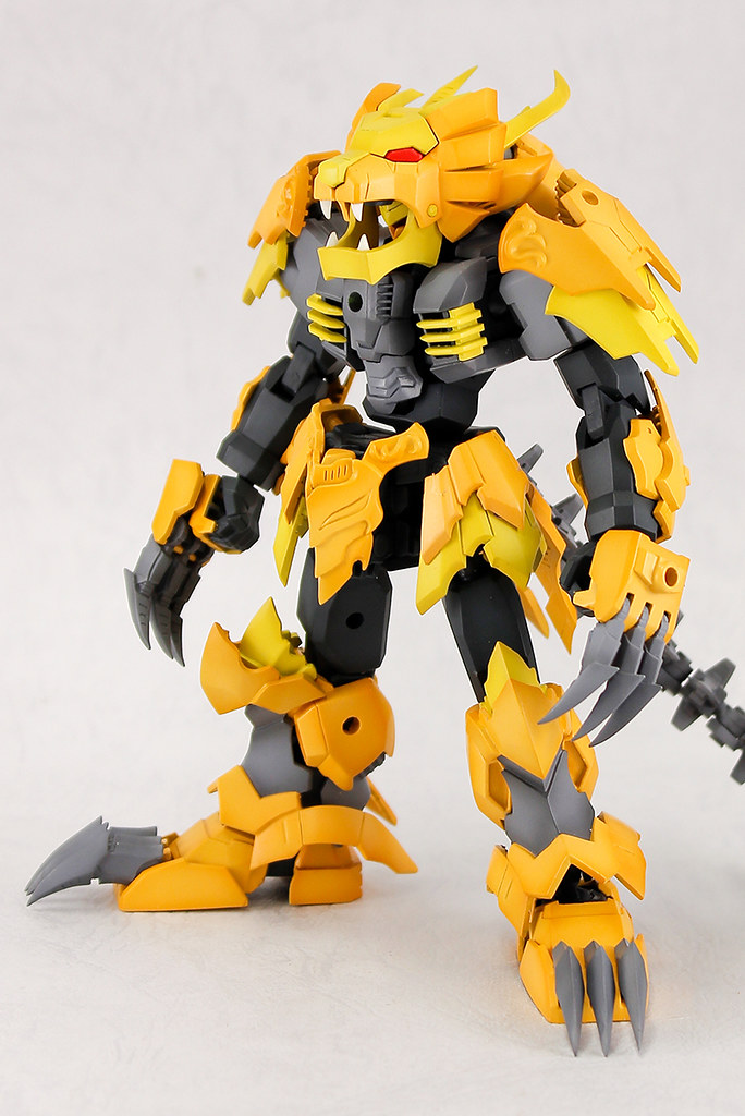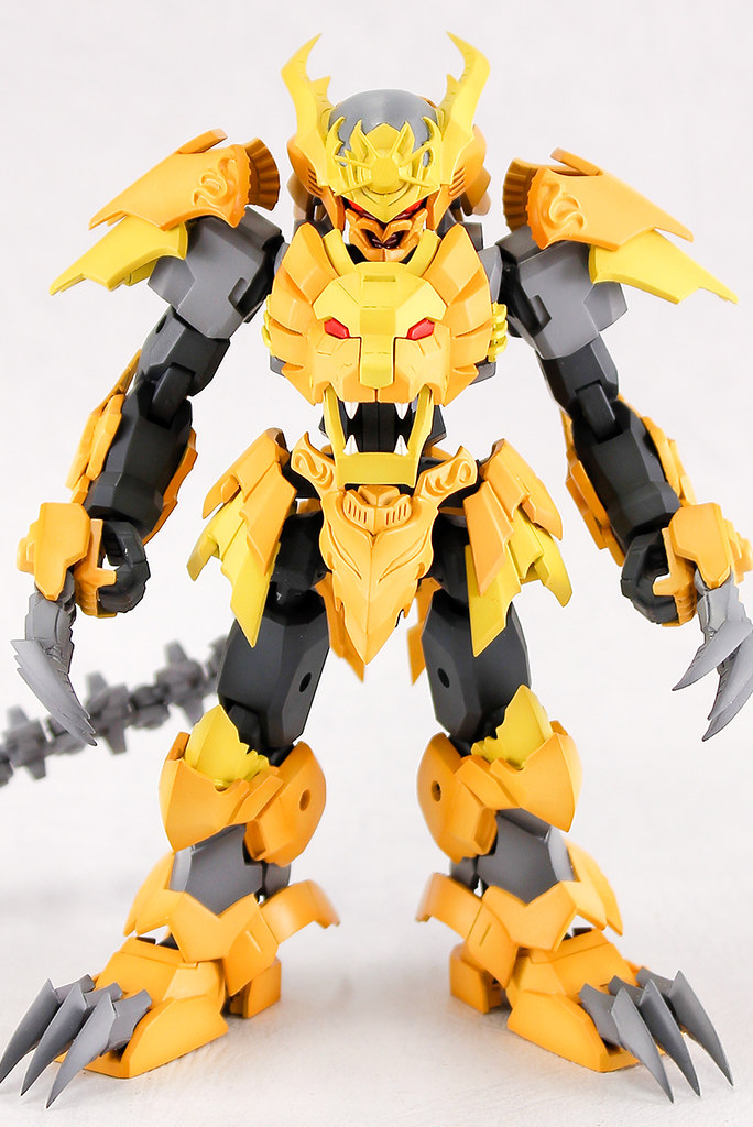 「牙王」原本是日本模型玩家「プラアクト大好き。」在「第貳回PLA-ACT大賽」中所投稿的作品【武装獅子】,在此階段就已經具備出色的造型以及「完全變形」結構,深受 PLUM 內部好評。自 2016 年 05 月起,PLUM 陸續發表了【武装獅子】的商品化企劃,包含將名字改為【牙王】、賦予更加精密的造型等,終於在 2017 年正式發表。