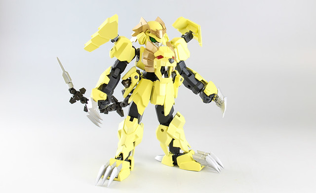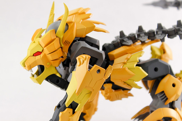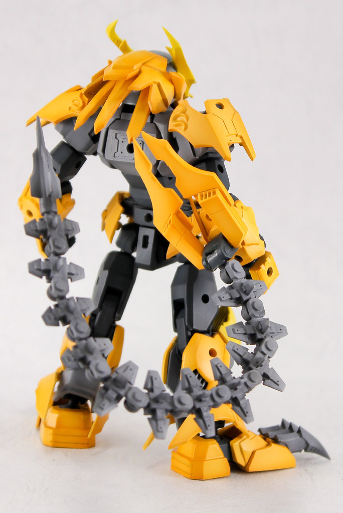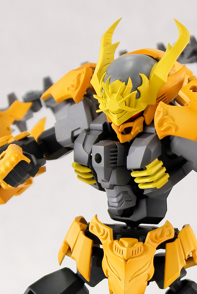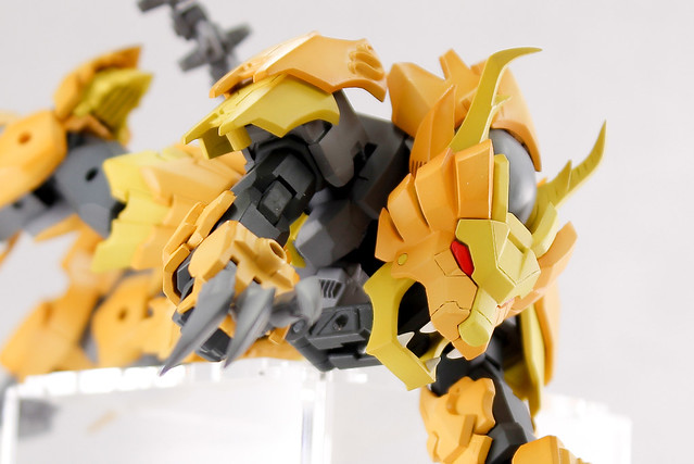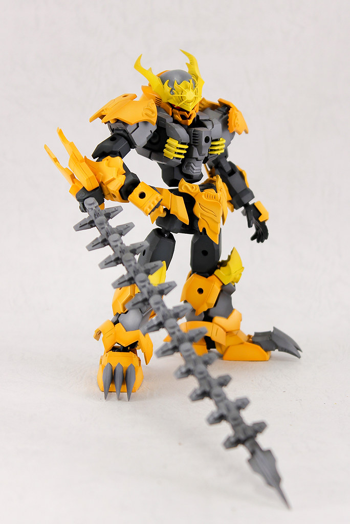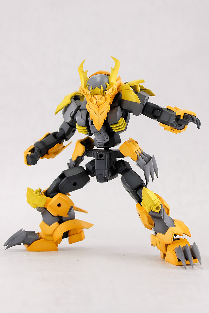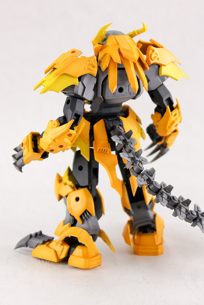 「牙王」原本是日本模型玩家「プラアクト大好き。」在「第貳回PLA-ACT大賽」中所投稿的作品【武装獅子】,在此階段就已經具備出色的造型以及「完全變形」結構,深受 PLUM 內部好評。自 2016 年 05 月起,PLUM 陸續發表了【武装獅子】的商品化企劃,包含將名字改為【牙王】、賦予更加精密的造型等,終於在 2017 年正式發表。