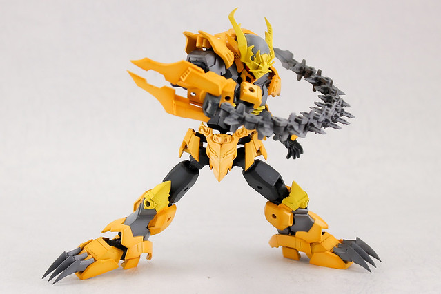 正式商品化的「PLA-ACT08:牙王」具備更精密銳利的造型、更完整的「完全變形」結構,整體身形比例更加高挑、壯碩,不必透過替換零件就能從「牙王」變形為「獅子形態」!此外套件各處也具備規格相同的接孔,能與同系列商品進行擴充,可玩性大幅上升!