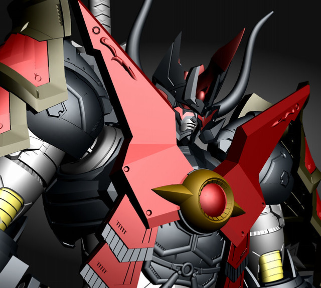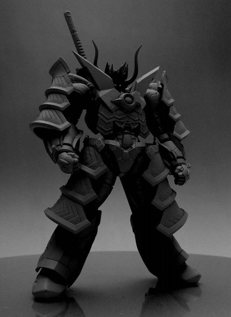 原創魔神「魔神凱薩刃皇」同樣是與千值練公司協力製作,可以從開發中的CG發現,這架武人型全身都充滿了戰國武將的風格,頭部更是換成熟悉的勇者系列、藍光人系列的臉呀!