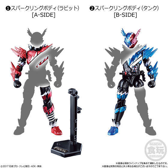 這次第五彈預計收錄有 假面騎士Build「兔子坦克氣泡型態(ラビットタンクスパークリングフォーム)」的(兔子 ラビット)A-SIDE與(坦克 タンク)B-SIDE,還有「鳳凰機械型態(フェニックスロボフォーム)」的A、B-SIDE ,兩款強力型態的左右半身配件,以及「假面騎士Cross-Z Charge」也有"交叉裝甲配件(クロスアーマーセット)"和"可動機構素體(アクションボディセット)"來組成,另外還有一款是「夜霸(ナイトローグ)」等等七種類盒玩可以收藏,喜愛《假面騎士Build》系列的玩具人可以參考一下歐!