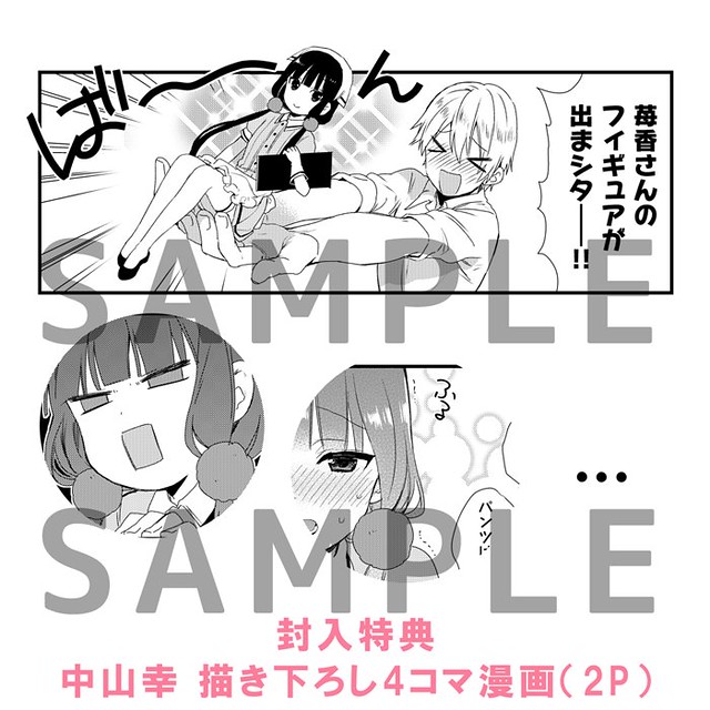 雖然手拿菜單,臉上掛著平時溫柔笑容的莓香很可愛,但「Stile」畢竟是把屬性賣好賣滿的咖啡廳,怎麼能不讓莓香來個「超S」屬性呢?因此在特典中,將會附上莓香的「超S表情替換零件」,重現 M 屬性客人最愛的表情!以及原作者 中山幸老師全新繪製的《調教咖啡廳》4格漫畫!