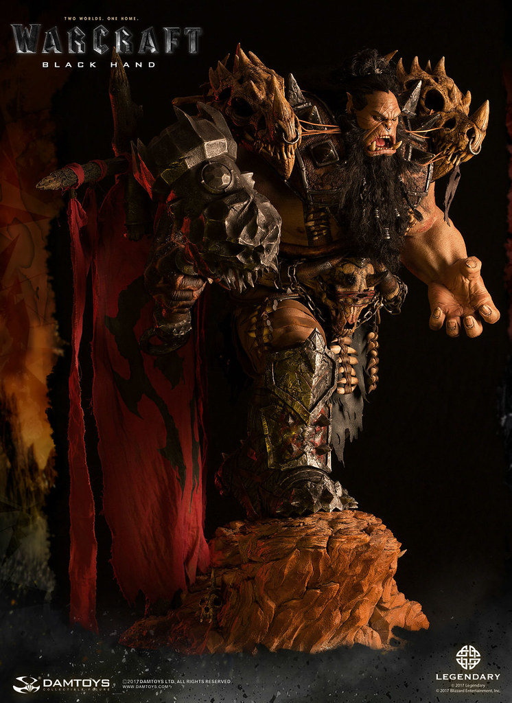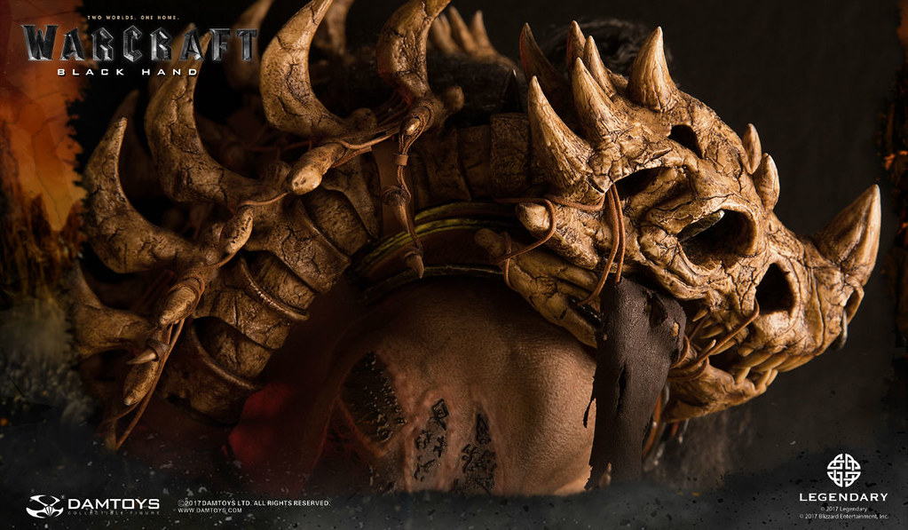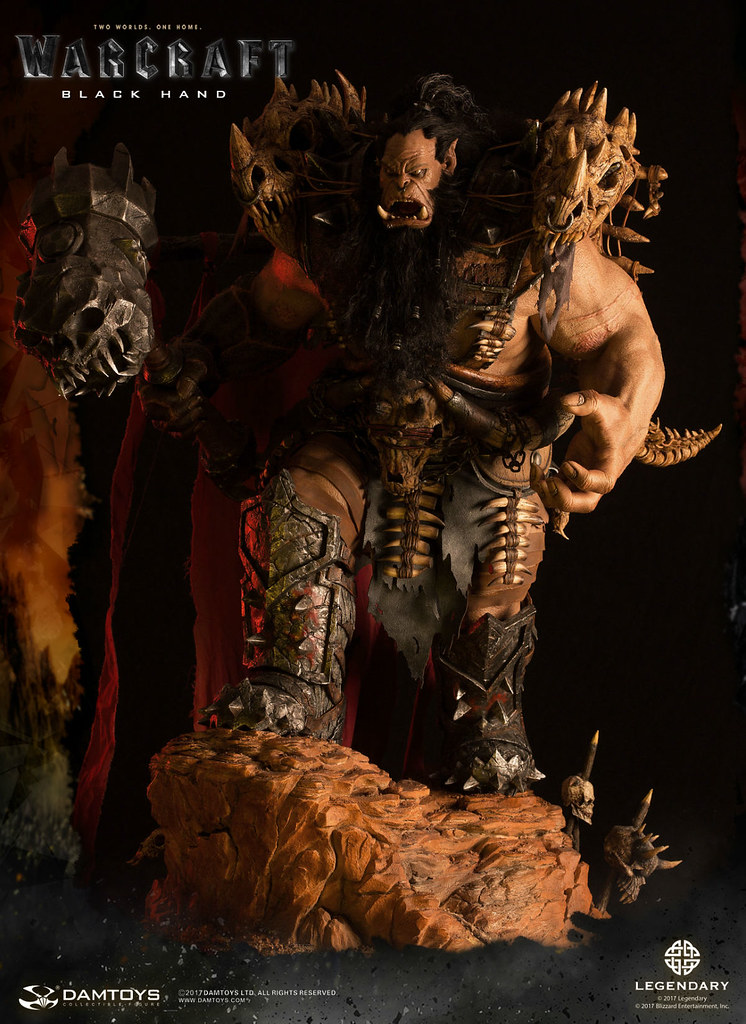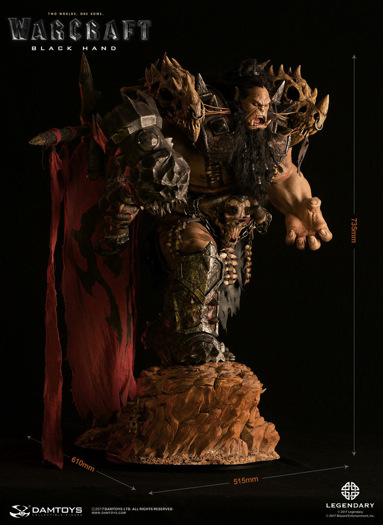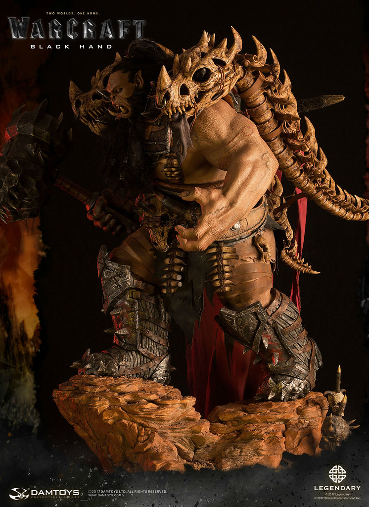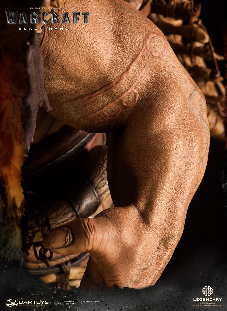 本作生動地再現了黑手在電影中的形象,手握重錘、邁開大步的姿態實在是魄力滿點!猙獰的表情、粗壯的肌肉展露無遺,全身複雜的裝備、飾品、象徵榮耀的骨頭鎧甲皆考究地還原,豐富的材質選用讓黑手更加貼近劇中的設定,舊化的金屬、皮革也增添真實感,尤其兩邊肩膀上的龍骨,出色的造型和細緻的紋理非常搶眼啊~再搭配逼真的岩石地台,使作品完整性再提升,絕對值得魔獸迷珍藏歐~