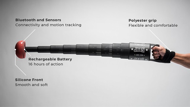 其實JABii Boxing Game 這款遊戲一開始的目的是想讓孩子們可以玩一個「動起來」的遊戲,而不只是單純地看著手機、平板螢幕玩遊戲,JABii Boxing Game 一共分為兩個部分,可以伸縮自如的拳套「JABii Glove」以及手機虛擬應用程式,只要將JABii Glove 跟手機連接,就可以與朋友展開對戰,拳套也會及時地將資料傳送到App 裡頭,不但有積分,還具備能夠提升等級、換裝備、解鎖不同角色等這些吸引人的遊戲元素。