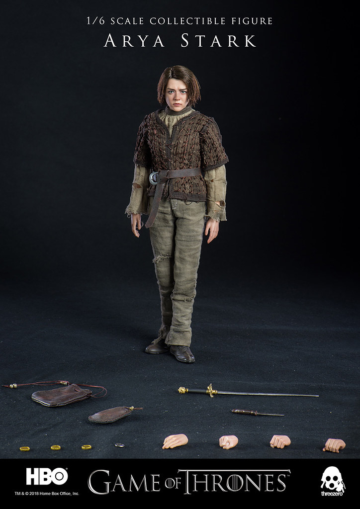 在推出「瓊恩.雪諾」、「桑鐸.克里岡」、「丹妮莉絲.坦格利安」等作品後,香港知名人偶品牌threezero 再度發表來自美劇《冰與火之歌:權力遊戲》的人氣角色「艾莉亞·史塔克」(Arya Stark)1/6 比例可動人偶作品,將於2018年1月16日開放訂購的消息。