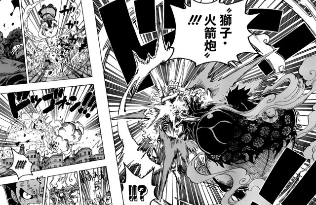 獅子・火箭炮在漫畫第785 話的最後魄力登場,是被進入四檔的魯夫當作最後一擊的強力絕招!將雙拳收縮進使用武裝色霸氣硬化的手臂中,蓄力之後一口氣噴發出去的強力打擊招式;在德雷斯羅薩篇與多佛朗明哥死鬥時,這招獅子・火箭炮可是把明哥打得老遠啊~