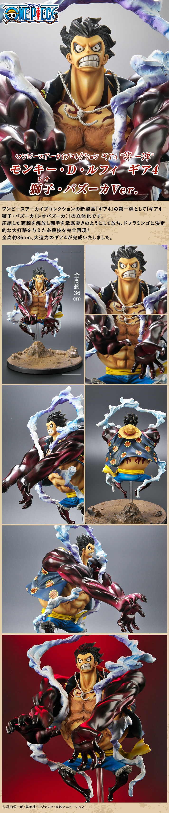 在天夜叉「唐吉訶德·多佛朗明哥」之後,由日本PLEX 玩具公司所發行的「ARCHIVE COLLECTIONS」要推出一個嶄新的「四檔」(ギア4)系列,首彈登場的作品是「蒙其·D·魯夫 四檔 獅子・火箭炮Ver.」(モンキー・D・ルフィ ギア4 獅子・バズーカVer.),預計將於2018年6月發貨!!