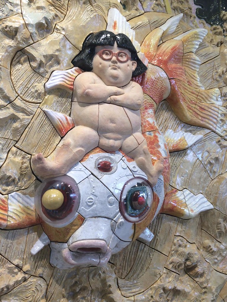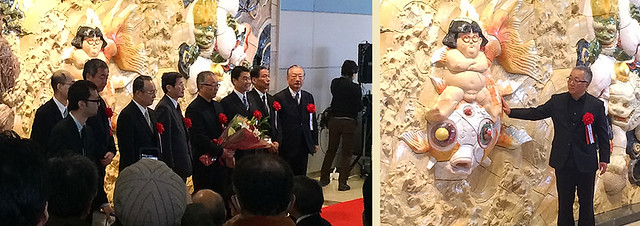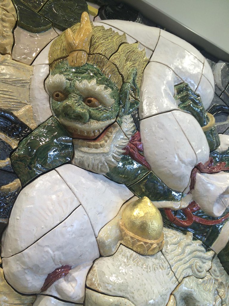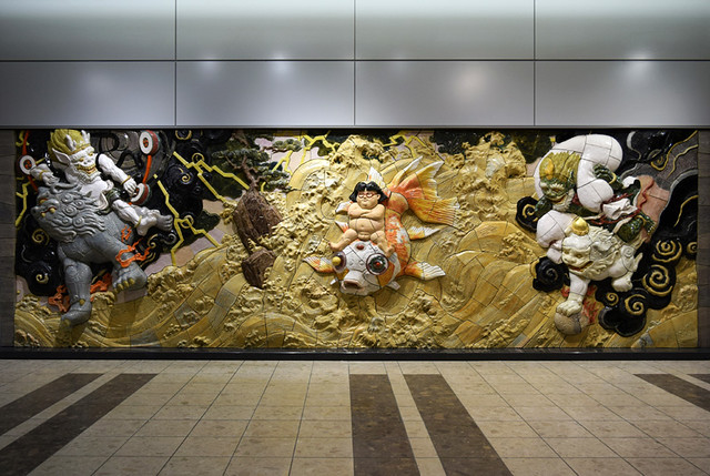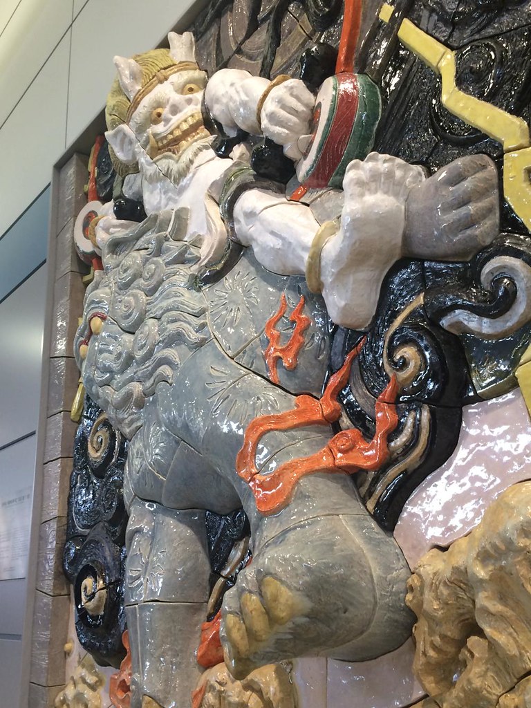 《金華童子風神雷神ヲ従エテ波濤ヲ越ユルノ図》(“Kinka Doji Riding the Waves Accompanied”)出自於在大友克洋的畫集《Kaba 2 – Otomo Katsuhiro Artwork Book》中。在2015年,為了復興震災影響的東日本旅遊觀光業,大友克洋老師受到了仙台國際機場的邀請,將此作品擴展、追加了左右兩側的風神、雷神圖樣之後,請到日本知名的壁畫團隊「クレアーレ熱海ゆがわら工房」將其立體化。