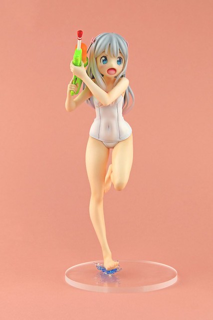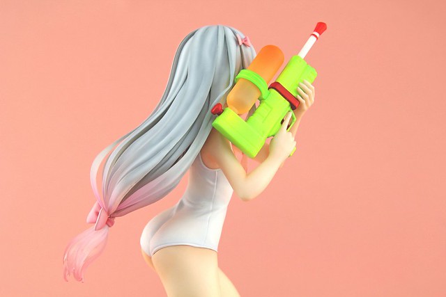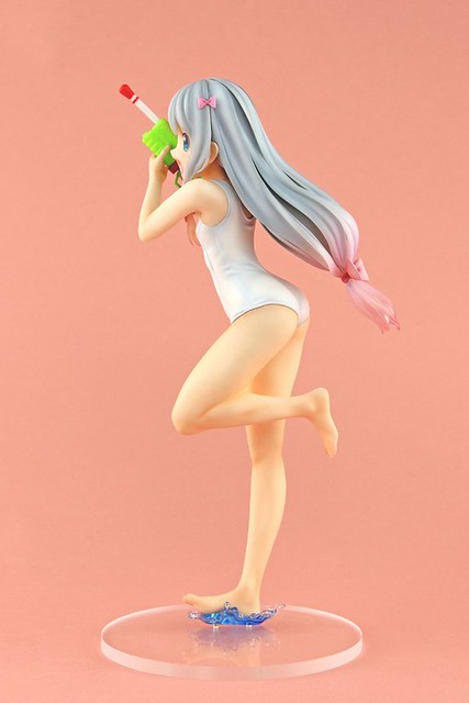 此次有別於其他家廠商都是以她拿著數位畫筆的姿態,以特殊穿著泳裝和拿著水槍的造型來呈現,有著格外逗趣又可愛的風格,在腳底部還有使用透明材質來表現踏著水花的樣貌,底座也是運用透明材質來製作,她灰色漸層的髮色也完整再現,造型上多處細節都表現地相當精彩,喜愛《情色漫畫老師》系列的玩具人可以參考一下歐!