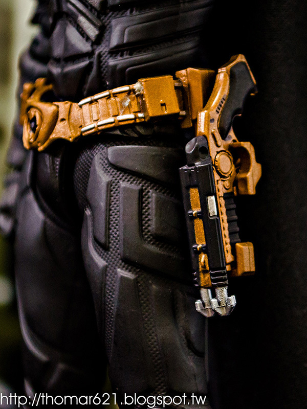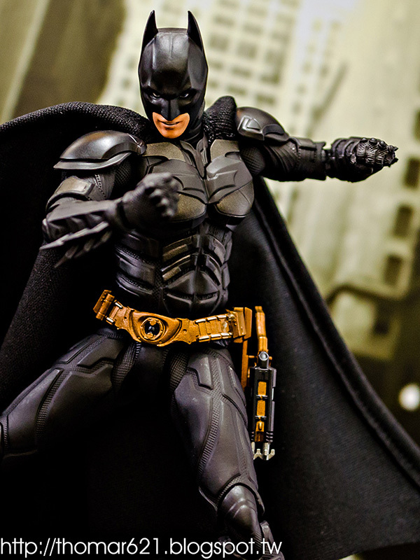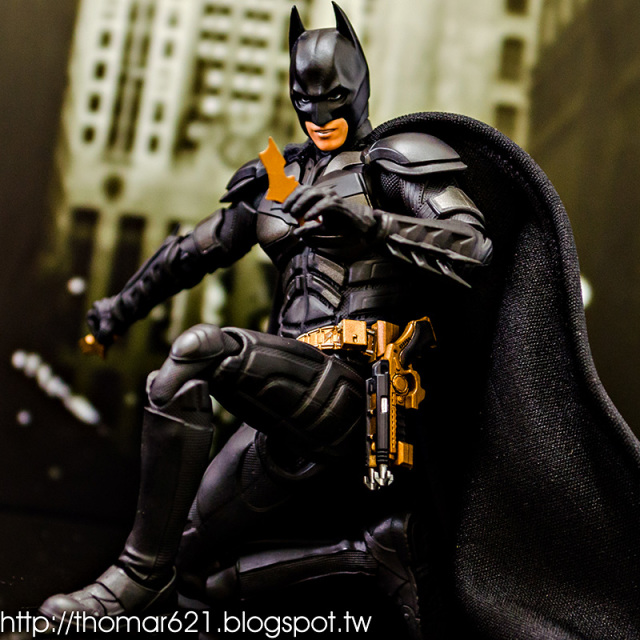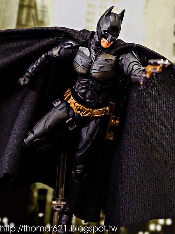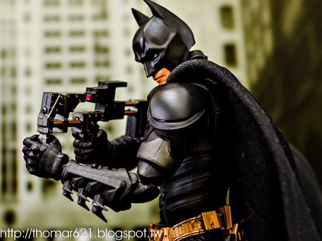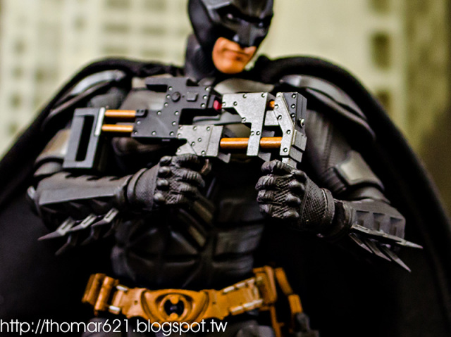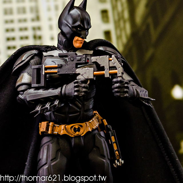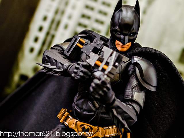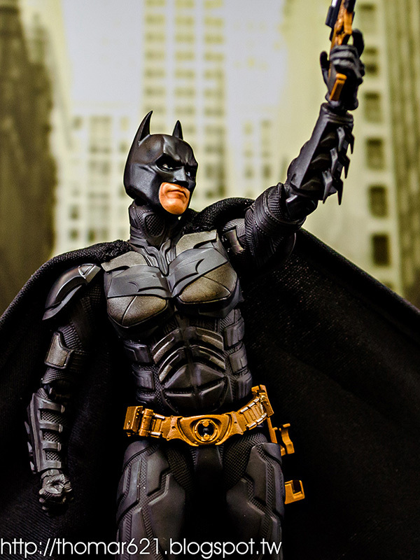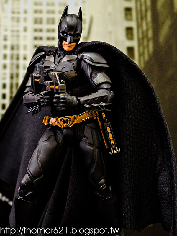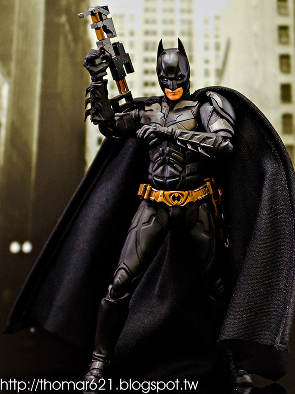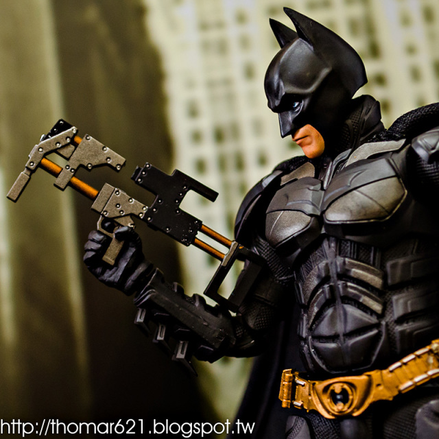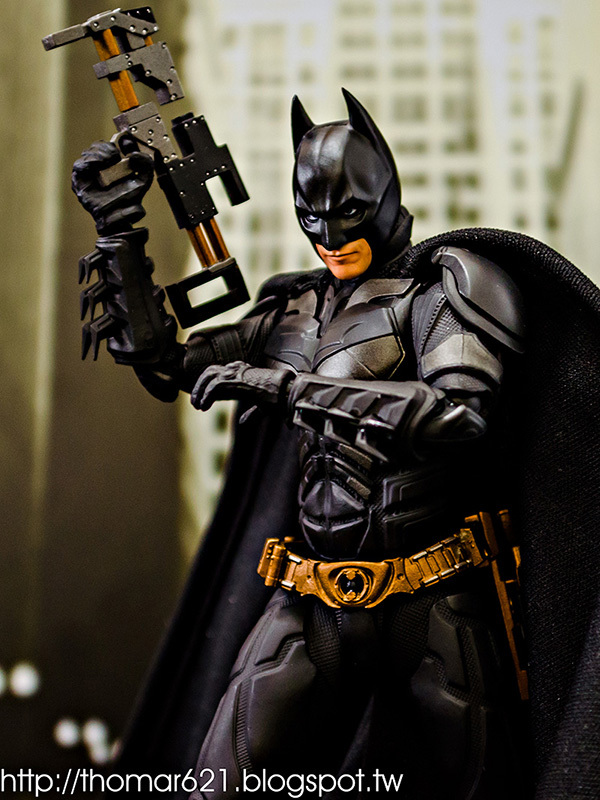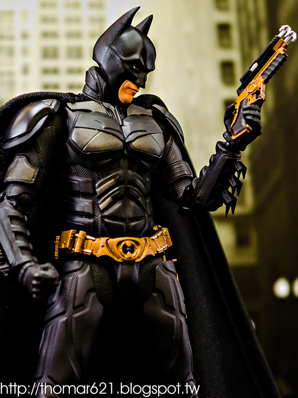 也許有人會抱怨 EMP 槍跟貝爾的頭沒有給,產品欠誠意之類的。這是我的感覺,EMP槍第二集並未出現,內容已經有附另一個發射黏膠炸彈的武器給你。貝爾頭雕,SHF 的 3D 列印技術品質上我仍覺得不夠成熟,做不好多少會影響銷量。況且我收老蝙人偶都是玩老蝙不是玩貝爾,把玩取向來說我覺得無所謂。
