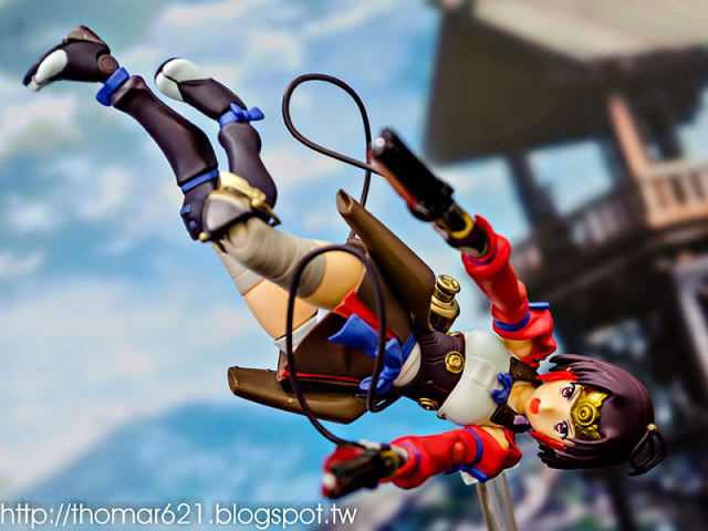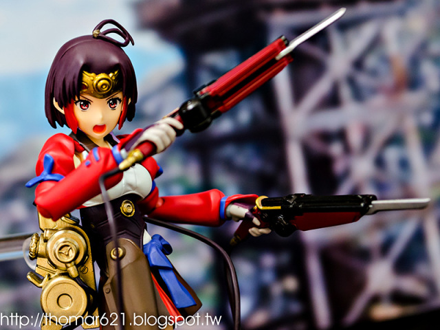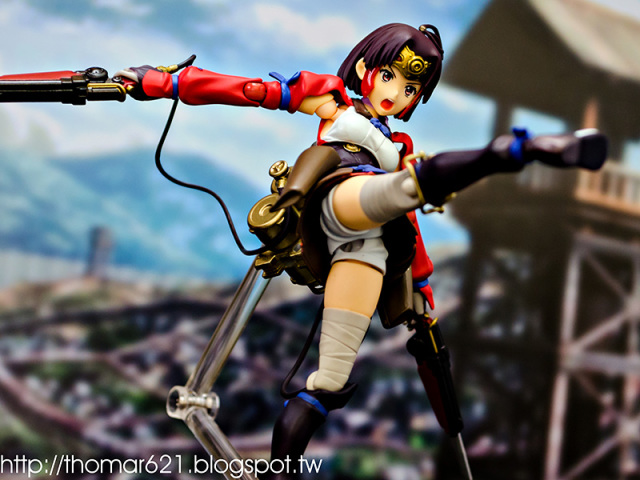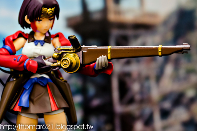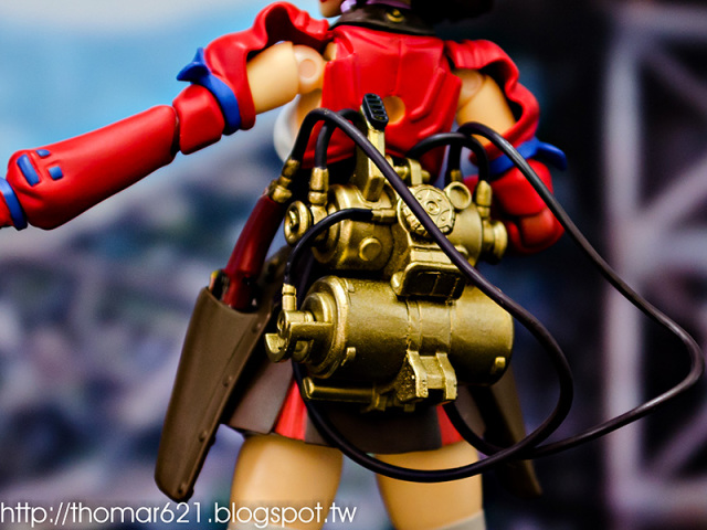 腰部的短槍是用替換式作收納,前部短槍身可以拉出刺刀。另外一支蒸氣長槍替換時請小心,零件很小很容易搞丟。