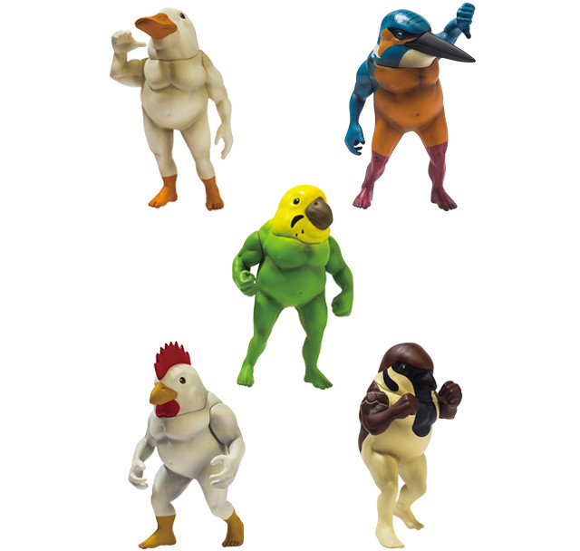 「戰鬥筋肉鳥(ガチムチ鳥シリーズ)」轉蛋收錄了鸚鵡、麻雀、雞、鴨、魚狗等五種鳥類,全高約 7 公分,將他們充滿挑釁的動作、壯碩肥美的體型忠實立體化,肌肉間施以厚重的陰影塗裝加深立體感,讓小朋友看到都會在心中產生陰影!
