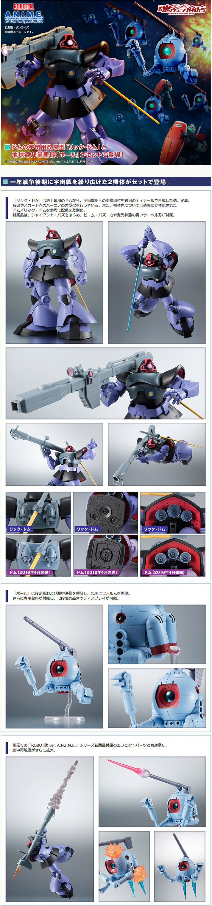 由日本萬代玩具公司收藏事業部發行的機人可動系列「ROBOT魂」再度發表了來自《機動戰士鋼彈》的最新商品「ROBOT魂 〈SIDE MS〉MS-09R 里克・德姆&RB-79 鋼球 ver. A.N.I.M.E.」預計於 2018 年 06 月發售的消息。
