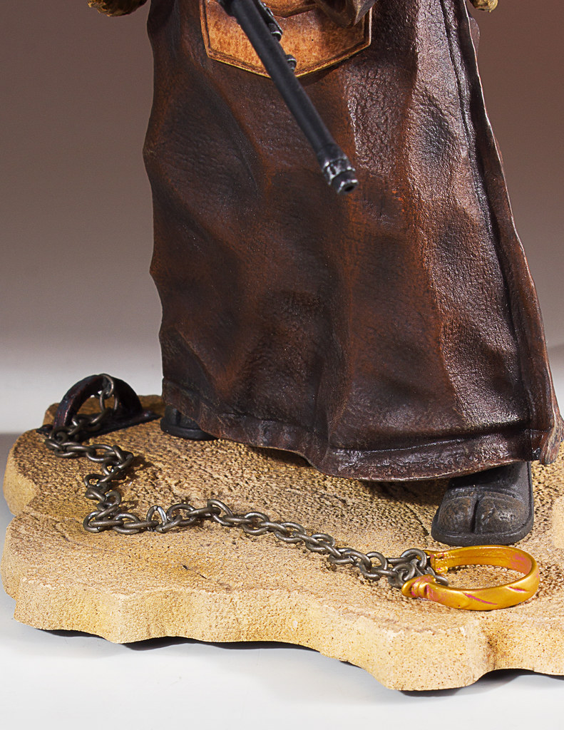 「扎庫斯 1/8 比例全身雕像」以高製作水準完整再現了這位蟲型賞金獵人的樣貌,全身的裝備皆施以細膩的造型刻畫,尤其是頭部的雕刻十分精緻,看起來真的有點令人發毛啊(小編Hen怕蟲的~)!手工塗裝將服裝的髒污極其寫實地展現,呼吸裝置更是考究還原,手握標準配備GRS-1 snare rifle,搭配設有陷阱的地台,彷彿就在等待獵物上鉤一樣,那下一彈作品該不會就是夥伴「4-LOM」了吧~!
